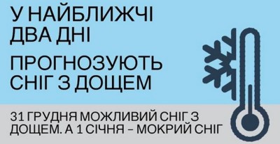 31 ГРУДНЯ МОЖЛИВИЙ СНІГ ІЗ ДОЩЕМ, А 1 СІЧНЯ МОКРИЙ СНІГ