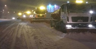 Для більш ефективної роботи та враховуючи інтенсивні опади, з 02.15 год. ночі в усіх районах міста проводилось очищення дорожньої мережі колонами спецтехніки.