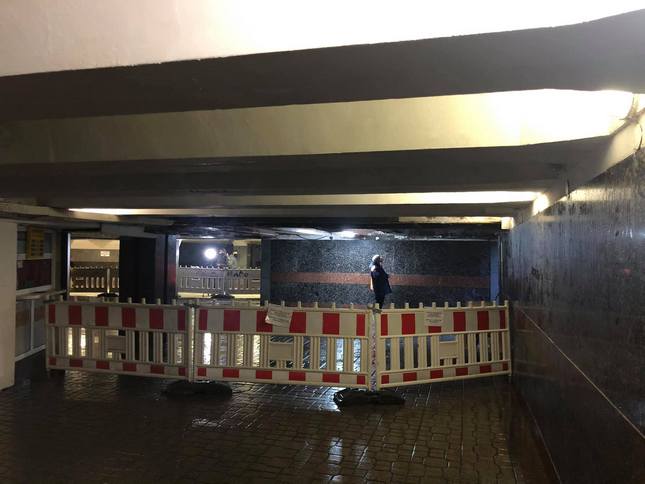Балансоутримувач перевірить інші підвісні конструкції стелі цього підземного переходу.