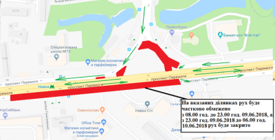 - з 08.00 год. до 23.00 год. 09.06.2018 рух буде частково обмежено;