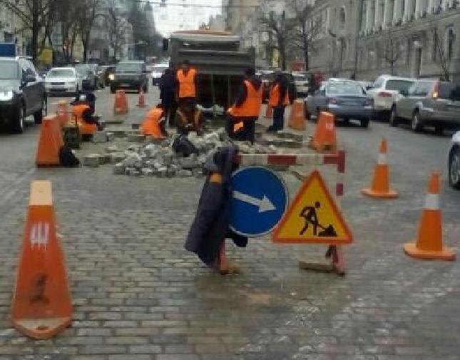 Працівниками КП ШЕУ Шевченківського району комунальної корпорації "Київавтодор" проведено відновлювальні роботи з мощення бруківки на проїзній частині вул. Б.Хмельницького 3-5, після прокладання інженерних мереж, які виконувалися в складі робіт з реконструкції ЦУМу.