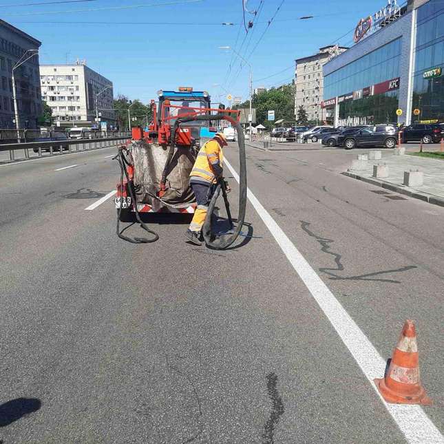 На столичних автошляхах тривають ремонти. Окрім заміни асфальтового покриття на дорогах ліквідовують тріщини.