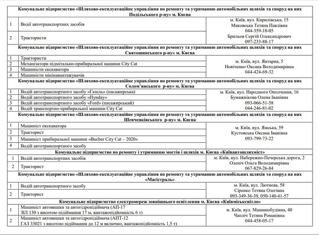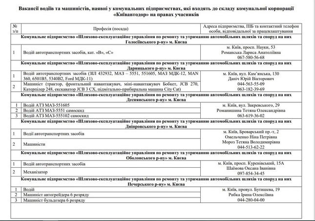 Комунальні підприємства, які входять до складу КК «Київавтодор», а це 11 шляхово-експлуатаційних підприємств всіх районів Києва, КП «Київавтошляхміст» та КП «Київміськсвітло», запрошують на роботу водіїв та машиністів.