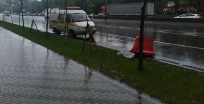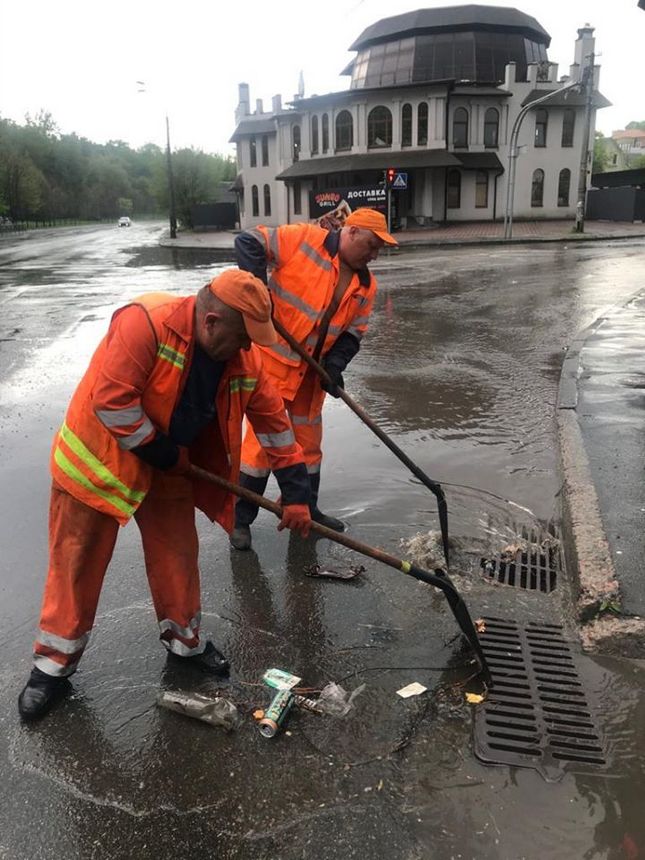 Біля проблемних ділянок, де ймовірні підтоплення, заздалегідь, ще до початку зливи, почала чергувати спецтехніка. Зокрема, біля станції метро «Дорогожичі» та поблизу станції метро «Лівобережна».