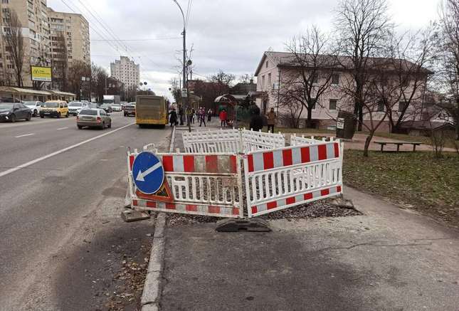 Днями на тротуарі на проспекті Лобановського утворилось просідання і провал покриття. Проблему виявили працівники ШЕУ Солом’янського району. Причина - аварія на інженерних мережах.