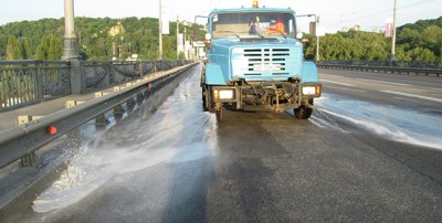 Комунальні підприємства корпорації «Київавтодор» позмінно в цілодобовому режимі здійснюють полив проїжджої частини столиці.