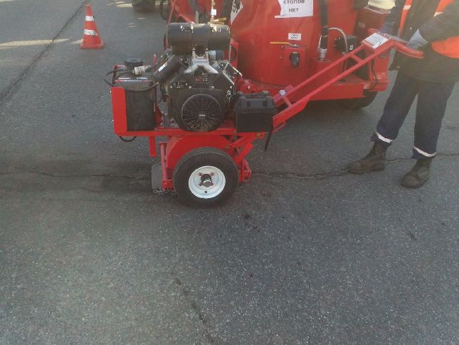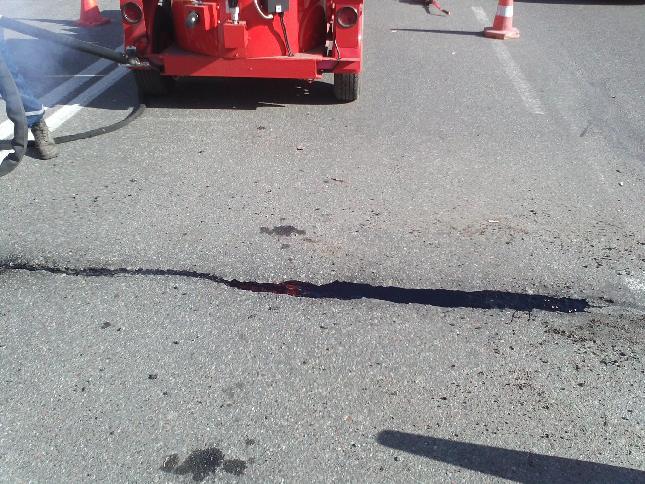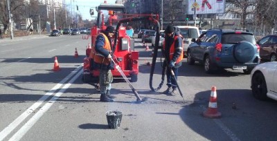 КП ШЕУ Солом'янського району КК "Київавтодор" продовжує виконувати роботи по заливці тріщин асфальтобетонного покриття обладнанням Crafco серії Super Shot по вулиці Василя Липківського (Урицького)