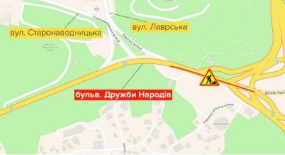 НА БУЛЬВ. ДРУЖБИ НАРОДІВ ЧАСТКОВО ОБМЕЖАТЬ РУХ