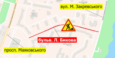 НА БУЛЬВ. ЛЕОНІДА БИКОВА ЧАСТКОВО ОБМЕЖАТЬ РУХ