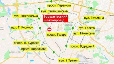 НА ЧАСТИНІ БОРЩАГІВСЬКОГО ШЛЯХОПРОВОДУ ПЕРЕКРИЮТЬ РУХ