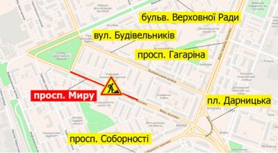 НА ЧАСТИНІ ПРОСП. МИРУ ЧАСТКОВО ОБМЕЖАТЬ РУХ
