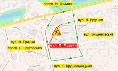 • вул. О. Мишуги - вул. Л. Руденко - вул. С. Крушельницької - просп. П. Григоренка.