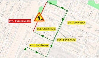 • вул. Ушинського - вул. Донецька - вул. Волинська - вул. Смілянська - вул. Ушинського.