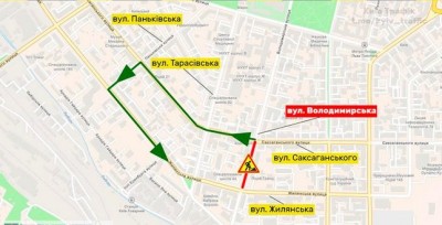 НА ЧАСТИНІ ВУЛ. ВОЛОДИМИРСЬКІЙ ПЕРЕКРИТО РУХ ДО 18:00 15 СЕРПНЯ