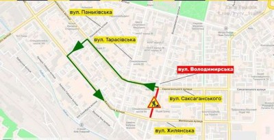 НА ЧАСТИНІ ВУЛ. ВОЛОДИМИРСЬКІЙ ПЕРЕКРИЮТЬ РУХ З 7:00 ДО 19:00 27 СЕРПНЯ