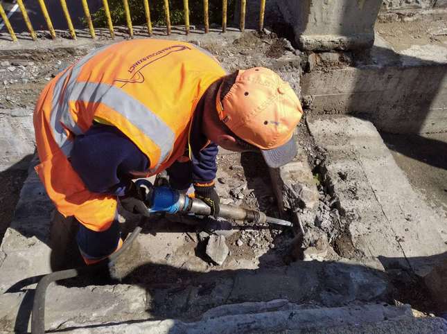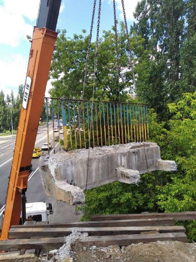 На Дегтярівському шляхопроводі завершено перший етап протиаварійних робіт. Зокрема, працівники КП «Київавтошляхміст» демонтували карнизні блоки, тротуарні плити і перильне огородження з боку вулиці О. Теліги.