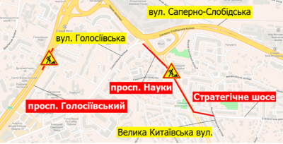 - Стратегічне шосе (від просп. Науки до вул. Великої Китаївської);
