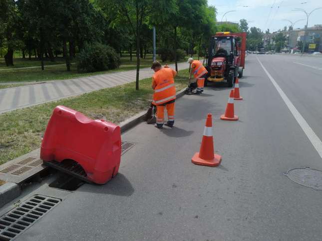 Перед початком прогнозованих опадів дорожники розпочали чергування у місцях можливих підтоплень. Зокрема, на вул. Олени Теліги біля тунелю, під Каховськими шляхопроводами поблизу ст. м. «Лівобрежна».