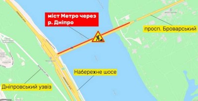 НА МОСТУ МЕТРО ЧЕРЕЗ Р. ДНІПРО ЧАСТКОВО ОБМЕЖАТЬ РУХ