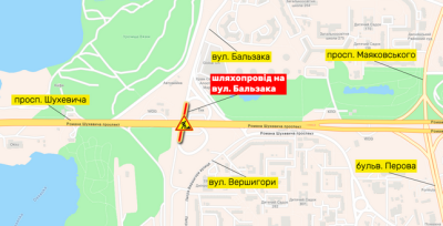 НА НА ШЛЯХОПРОВОДІ НА ПЕРЕТИНІ ВУЛ. БАЛЬЗАКА І ПРОСП. ШУХЕВИЧА ЧАСТКОВО ОБМЕЖЕНО РУХ ДО 20 ЧЕРВНЯ