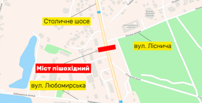 НА НАДЗЕМНОМУ ПІШОХІДНОМУ ПЕРЕХОДІ ЧЕРЕЗ СТОЛИЧНЕ ШОСЕ ЧАСТКОВО ОБМЕЖЕНО ПРОХІД