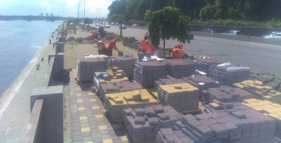 Сьогодні вдень дорожники готують чергову ділянку вул. Олени Теліги - від вул. Ольжича до вул. Кирилівської - до влаштування верхнього шару покриття, завдяки новому покриттю з ФЕМів поступово «вдягаються» у нову кольорову гаму тротуари на вул. Володимирській та Набережному шосе.