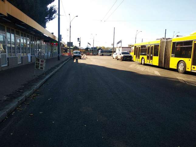 Рух транспорту на Оболонському проспекті повністю відновлено. Оновлення тротуарів триває.