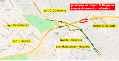 НА РОЗВОРОТІ НА ПРОСП. С. БАНДЕРИ БІЛЯ ЗАЛІЗНИЧНОЇ СТАНЦІЇ «ЗЕНІТ» ПЕРЕКРИТО РУХ ДО 20 ЛИПНЯ