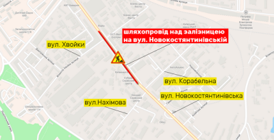 НА ШЛЯХОПРОВОДІ ЧЕРЕЗ ЗАЛІЗНИЦЮ НА ВУЛИЦІ НОВОКОСТЯНТИНІВСЬКІЙ ЧАСТКОВО ОБМЕЖЕНО РУХ ДО 19 СЕРПНЯ