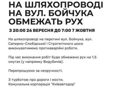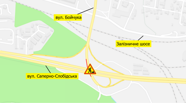 На шляхопроводі на перетині вул. Бойчука, вул. Саперно-Слобідської і Стратегічного шосе виконуватимемо протиаварійні роботи.