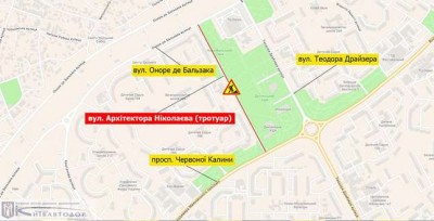 НА ТРОТУАРІ НА ВУЛ. АРХІТЕКТОРА НІКОЛАЄВА ОБМЕЖАТЬ ПРОХІД ПІШОХОДІВ З 20 ВЕРЕСНЯ ДО 25 ЖОВТНЯ