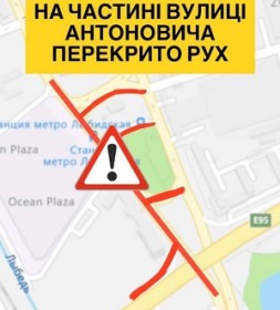 У зв’язку з аварійною ситуацією рух на вул. Антоновича біля Либідської площі перекрито.