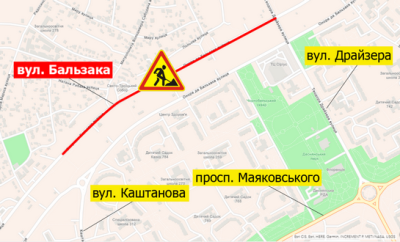 На вулиці Бальзака триває середній ремонт. Покриття оновлюємо на ділянці від вулиці Драйзера до пішохідного мосту над швидкісним трамваєм.