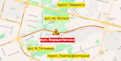 НА ВУЛ. БОРЩАГІВСЬКІЙ ЧАСТКОВО ОБМЕЖАТЬ РУХ З 00:00 26 ЧЕРВНЯ ДО 15:00 28 ЧЕРВНЯ