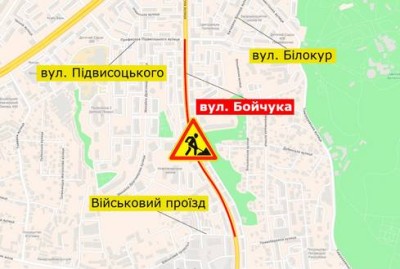 На вулиці Бойчука розпочинаємо середній ремонт. Покриття оновлюватимемо на ділянці між вул. Підвисоцького і Військовим проїздом. Працюватимемо у напрямку вул. Саперно-Слобідської.