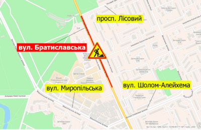 НА ВУЛ. БРАТИСЛАВСЬКІЙ ЧАСТКОВО ОБМЕЖАТЬ РУХ З 9:00 ДО 22:00 4 ЛИПНЯ