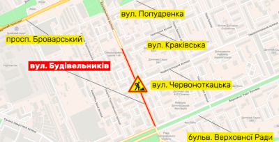 НА ВУЛ. БУДІВЕЛЬНИКІВ ЧАСТКОВО ОБМЕЖАТЬ РУХ З 21:00 25 ЧЕРВНЯ ДО 17:00 26 ЧЕРВНЯ