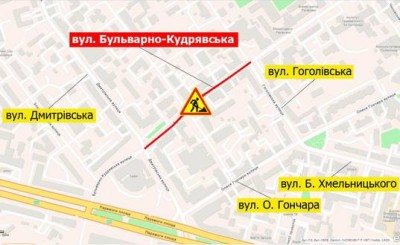 НА ВУЛ. БУЛЬВАРНО-КУДРЯВСЬКІЙ ЧАСТКОВО ОБМЕЖАТЬ РУХ