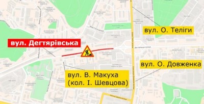 НА ВУЛ. ДЕГТЯРІВСЬКІЙ ЧАСТКОВО ОБМЕЖАТЬ РУХ