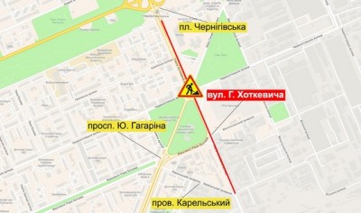На вул. Г. Хоткевича виконають поточний ремонт. Покриття оновлюватимуть на ділянці між пров. Карельським до пл. Чернігівської.