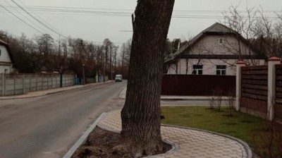 На вул. Макаренка облаштували тротуар зберігши дерево, доріжка оминає його