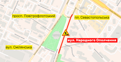 НА ВУЛ. НАРОДНОГО ОПОЛЧЕННЯ ЧАСТКОВО ОБМЕЖЕНО РУХ ДО 10 ВЕРЕСНЯ