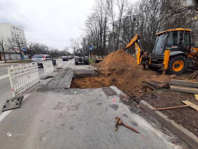 На місце викликали аварійну бригаду «Київводоканалу». Наразі рух обмежено у крайній правій смузі.