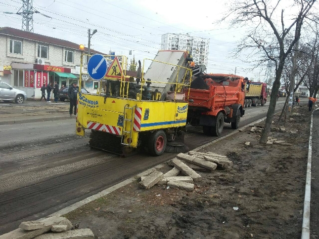 Наразі виконуються роботи з встановлення нового бортового каменю, ремонту люків оглядових колодязів, фрезерування старого асфальтобетону тощо.