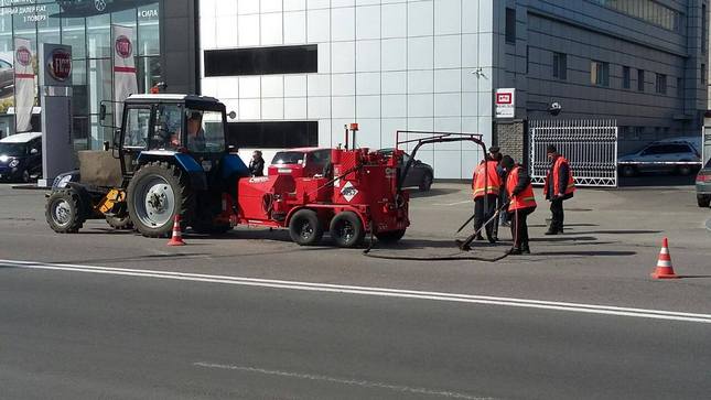 З метою попередження виникнення значних руйнувань дорожнього покриття підприємства корпорації "Київавтодор" продовжують застосовувати машини Crafco серії Super Shot для заливки тріщин асфальтобетонного покриття.