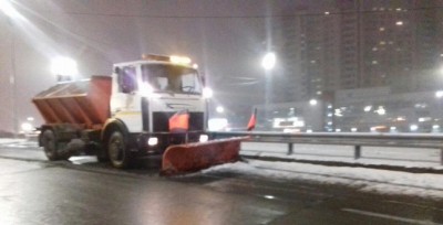 Упродовж ночі продовжилось прибирання міста від снігу і обробка вулично-дорожньої мережі протиожеледними засобам.