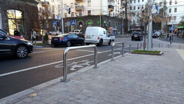 Перші у Києві антипаркувальні велопарковки встановили на вул. Пушкінській