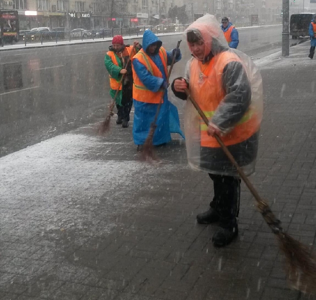 Станом на 15:30 29 листопада на дороги столиці виїхало 243 одиниці спецтехніки комунальної корпорації "Київавтодор" для прибирання та посипання реагентами вулиці Києва від першого снігу.