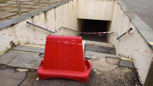 КП ШЕУ Солом’янського району роз’яснює, що підземний пішохідний перехід в 2020 р. був переданий на баланс КП ШЕУ Солом’янського району від КП "Благоустрій". При обстеженні інженерної споруди були виявлені три з дев’яти вхідних груп в аварійному стані, тому для застереження травмування пішоходів фахівці КП ШЕУ закрили три вхідні групи, одна з яких зображена на фото з дописом.