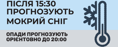 ПІСЛЯ 15:30 ПРОГНОЗУЮТЬ МОКРИЙ СНІГ ОПАДИ ПРОГНОЗУЮТЬ ОРІЄНТОВНО ДО 20:00